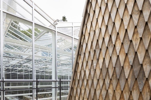 The design and construction of the Green Ark is the result of a collaboration between various groups working in alliance with the Meise Botanic Garden and the Flemish Government, including De Keyser Wood Industry, NU Architectuur Atelier, Archipelago Architects, Mouton and Van Poppel. Dually modified™ Kebony wood shingles were sawn into the roof of the pavilion, providing a natural finish that places the Green Ark in harmony with its botanical surroundings and enriches the visitor experience. In addition to the aesthetic viability, the use of Kebony wood also supports the Green Ark project